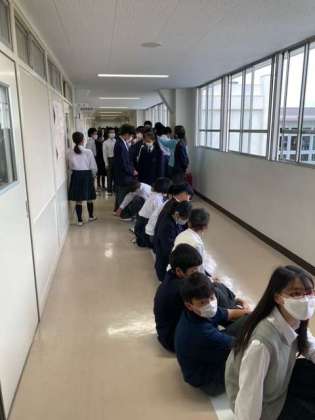 1学年 避難訓練 公開日 2022/05/13 更新日 2022/05/13 おしらせ 5/13(金)6校時終了後、避難訓練を実施致しました。本日は雨天だったため、生徒たちは安全行動を教室でとったのち、廊下に整列し教員が点呼をとりました。 いいね(0)