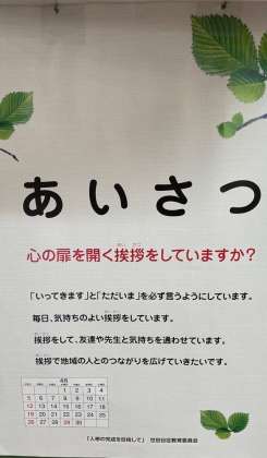 本日24日 生活指導主任より生徒たちは4月のころから比べてずいぶん挨拶ができるようになったという報告をもらいました。