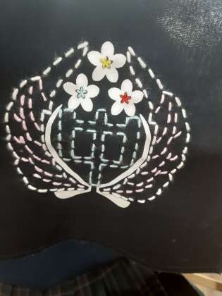 中心の中の文字は学年カラーの青色の糸を使っています。