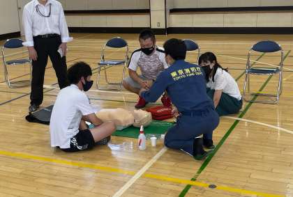 AEDの活用方法や胸骨圧迫のやり方を学びました。