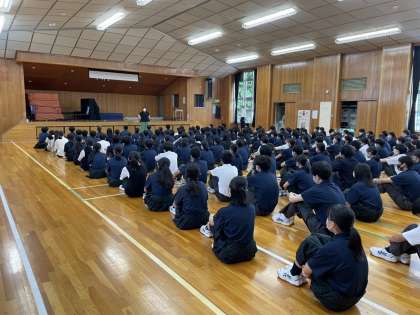 本日の朝に、格技室にて学年朝学活を行いました。1学期も残り1週間となりましたので、今までに引き続き、残りの学校生活も前向きに頑張っていこうという話をしました。