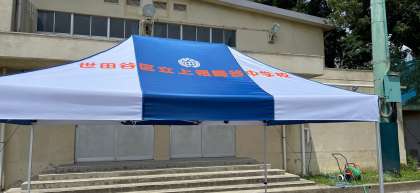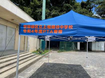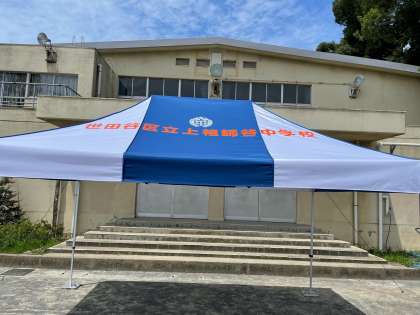 さて、この度、PTAの皆様からテントを寄贈していただきました。早速、熱中症対策として校庭で使用しております。この後、部活や体育祭その他イベントなどで活用させていただきます。
