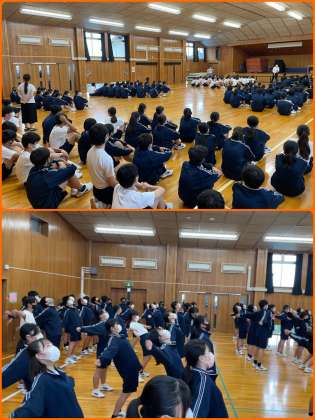 【2学年】ダンス発表会 準備運動 (ダイジェスト) 公開日 2022/07/21 更新日 2022/07/21 おしらせ 7月15日(金)6校時 2学年は、15日(金)にダンス発表会を行いました!ダンス委員を中心に発表当日まで工夫をしながら、練習してきました。どんな声かけをしていたのか?どんな工夫を施していたのか?各クラスの「裏話」を載せていきます。 こちらの写真は、本番前の準備運動の様子です。体育委員が声出しをして、全体のやる気を上げていました! いいね(0)