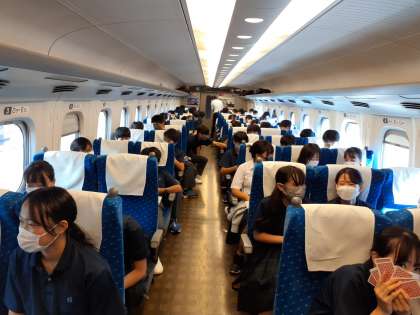 予定通り、8:51出発です。読書、カードゲーム、中にはワークで、勉強している生徒も。