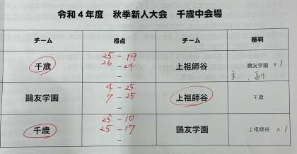 女子バレーボール部 秋季新人大会結果 公開日 2022/10/02 更新日 2022/10/02 おしらせ 10月2日(日) 女子バレーボール部 秋季新人大会終了しました!結果は、1勝1敗。3校中の2位でした! 応援に来てくださり、ありがとうございました。 まだまだ強くなれます。今後の活躍にご期待ください! いいね(0)