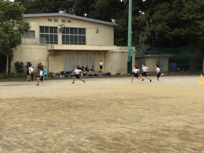一時間目は、自分の出場種目のレーンの確認、二時間目は全員リレーを走りました。