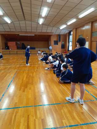 体育委員を中心に作戦や、アドバイスを伝え合っています。