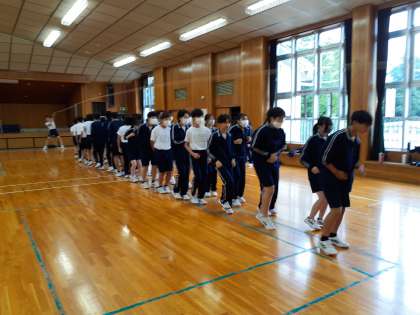 格技室では、大繩跳びです。