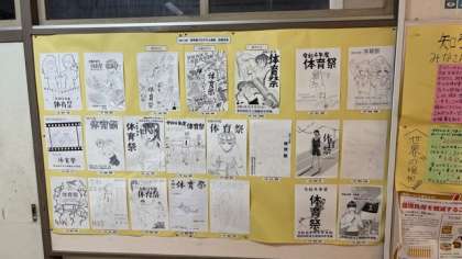 体育祭前日レポート1 公開日 2022/10/14 更新日 2022/10/14 管理職より いよいよ明日は第46回体育祭となります。本日は前日準備の様子をお伝えします。まず初めに今年度の体育祭プログラムの表紙の応募作品の紹介です。 どの作品も優秀でがんばっている様子が伝わってきます。 校舎2階に掲示してありますので、ぜひご覧ください。 いいね(0)