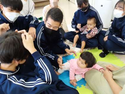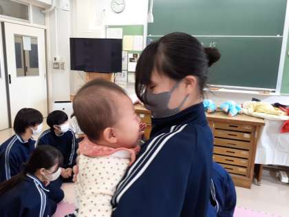 今週はB組とD組の生徒が赤ちゃんとふれあいました。