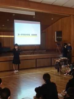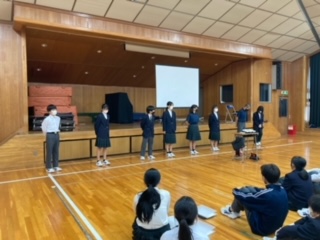 格技室に全クラスが集まり、校外学習実行委員の司会進行の元、概要の説明をしました。