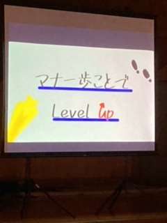 「マナー歩(まなーぶ)ことでレベルアップ」というめあてを胸に、学習します。