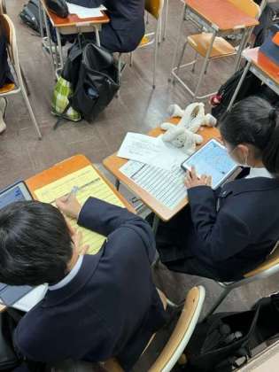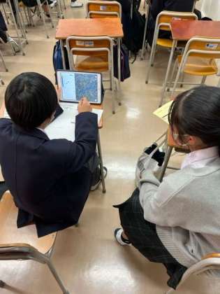 自分たちの取材場所までどう行くか、相談しています。公園や寺社などにも寄り道しながら世田谷のいいところを見つけます。