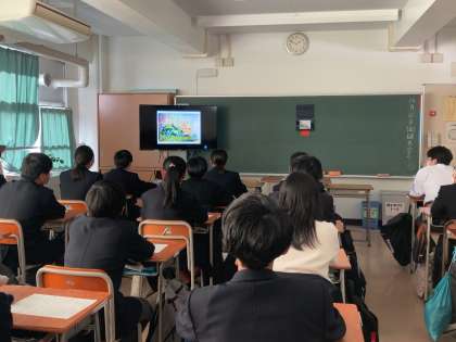 本日行われている平和教育講演会は、1年生はzoomで話を聞いています。