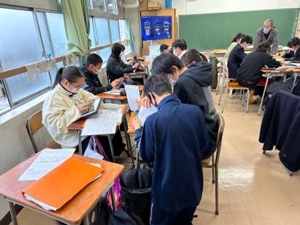 本日、2学年は、3時間目に校外学習に向けてコース検討をしました。見学時間、移動距離、昼食をとる場所などを班で話し合いながら、決めました。