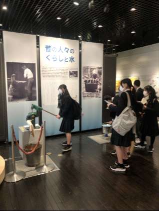昭和館では、昔の人々のくらしと水について、体験しながら学習しています。