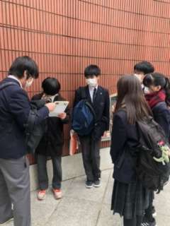 班員は、班長にしおりを読んで電話番号を確認してあげるなど、みんなで協力して進めています。