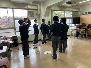 1Eの教室練習の様子です。パート練習を行なっています。