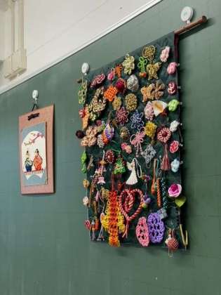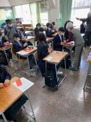 日本文化にふれる体験がはじまりました。飾り結び、折り紙のようすです。