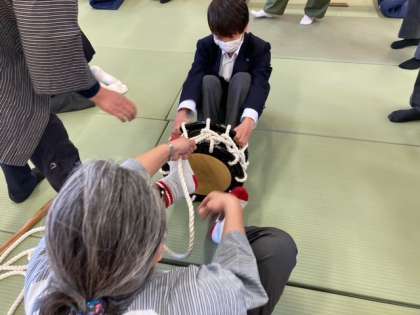 太鼓を締めるところから実技は開始です。これで音が決まるそうです。