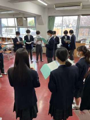 ソプラノ、アルト、男声が混同で練習しています。今までのパート練習をいかして、合わせの練習をしています。