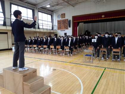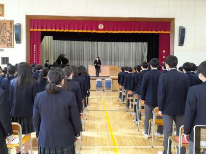 卒業式練習も今日から始まりました。午前中三時間続けて行いましたが、最後まで集中して真剣に取り組む3年生は立派です!!