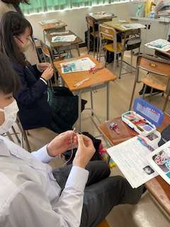 飾り結びを行いました。みんな器用にヘア飾りとストラップを作っていました。