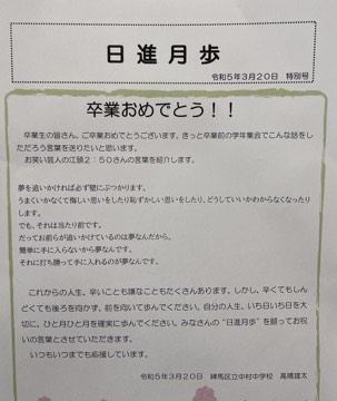 おかげさまで第45回卒業式が終了いたしました。卒業生は晴れやかな姿で旅立っていきました。