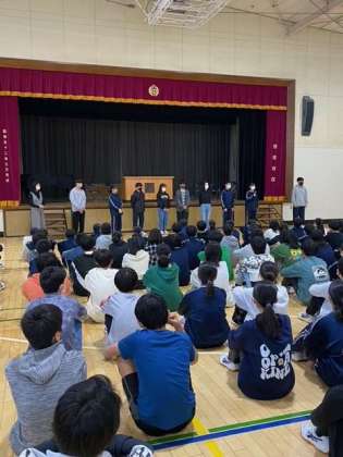 今年度最後の学年集会を行いました。学年委員から一人一言ずつ、今後の学習について、今後の学校生活について、そして学年の先生から一言ずつ話しました。話を聞いている表情から聞く態度も立派で成長を感じました。あと一日!最高の修了式にしましょう!