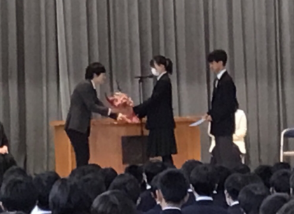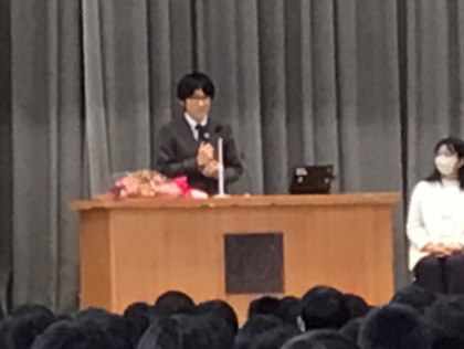 石川先生からは、「上祖師谷中学校の経験が大人になってから、役に立つように。上祖師谷中学校の卒業生で良かったと思えるように生活してほしい」と言葉をいただきました。
