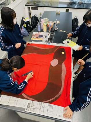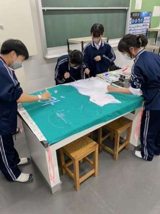 各クラス個性あふれた旗の色塗りがすすんでいます。昨年度よりデザインが凝っています!