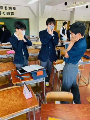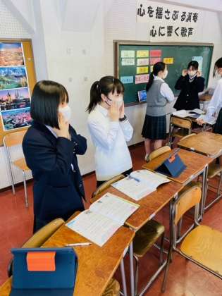 歌のテストに向けて、顔の表情筋を上げて響きをつけています。日に日に美しい響きになってきています。