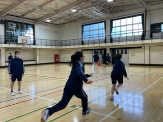 まず初めにみんなで、体育館でラジオ体操をし、その後、走順の確認をしました。