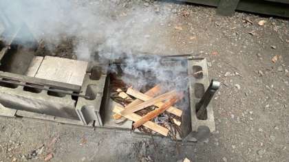 しかし、今日は昨日が雨だったので、森の着火剤に火がつきません