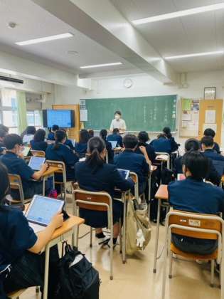 体育祭も近くなり、集団の一員として日々考えることが多くなってきました。道徳の時間に「テニス部の危機」という教材をもとに自分の考えをロイロノートに提出し、クラス全員の考えを共有しました。よりよい集団の在り方を改めて考えるきっかけになりました。