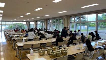 お昼にほうとう食べましたが、夜はカレーライスです。みんな元気よくたくさん食べています。