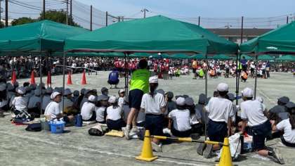 給田小学校のボランティアは、主に児童の誘導や熱中症対策としてのミスト担当を行っていました