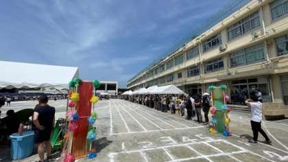 こちらも、児童のトイレまでの案内誘導、いや着順、判定のお手伝い等しています