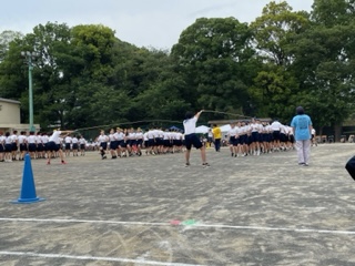 午後の部は、大縄、ムカデ競走、3年全員リレー、学級対抗リレーを行いました。