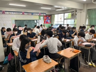 体育祭での頑張りを振り返り、クラスの全員に向けて、ありがとうのメッセージを送り合いました。