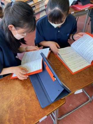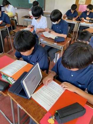 音楽の授業 1年生 公開日 2023/06/18 更新日 2023/06/18 おしらせ 音楽祭課題曲「南風」のパート、パートリーダーも決まり、まずはロイロノートに送られてきたパートの音源を聴いています。強弱記号や速度記号を楽譜で確認をしました。小学校との違いは「混声三部合唱」であるということです。 いいね(0)