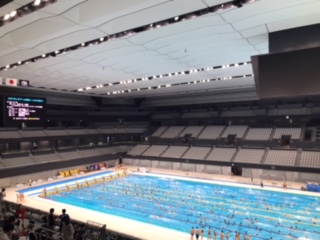 【水泳部】東京都選手権大会 公開日 2023/07/15 更新日 2023/07/15 おしらせ 今年度初の都大会に来ています。上中からは、標準記録を突破できた4名が参加します。 都大会は、今回から東京オリンピックと同じアクアティックセンターが会場です。とても綺麗で立派な会場です。 朝早くに集合し、只今ウォーミングアップをしています。全員ベストタイムを目指して頑張って欲しいです。 いいね(1)