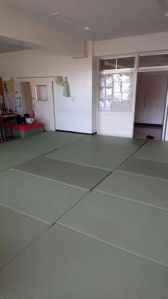 いつもは机がある教室で活動中。