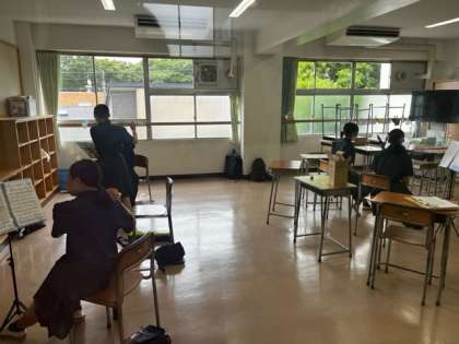 体力向上部(卓球)も少し狭いですが、教室で活動しています!