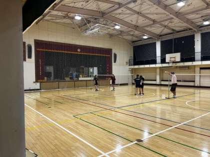 バドミントンは体育館を広く使って、一生懸命練習しています!