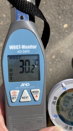 本日も熱中症に気をつけながら活動中 公開日 2023/08/18 更新日 2023/08/18 おしらせ 昨日までの学校閉庁日が明けて、今日から部活動などの活動が再開しています。 部活動は暑さ指数であるWBGTを測りながら安全に気をつけて活動をしています。 まだ校庭で活動する部活はありませんが、午前9時ですでにこのような数値になっています。 いいね(0)