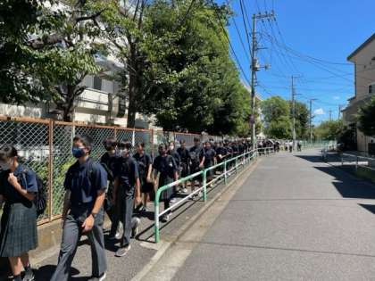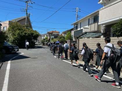 本日は集団下校をし、上祖師谷中学校でも防災の意識を高めています。