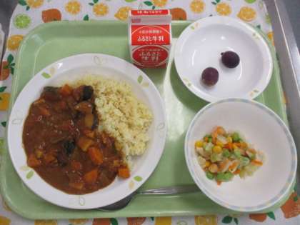 今日から2学期がスタートしました。最初の給食は、夏野菜をたっぷり使ったカレーライスです。まだまだ暑い日が続きますが、しっかり食べて2学期も元気にがんばりましょう。