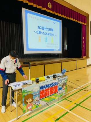 東京ガスネットワークの方が出前授業に来てくださいました。仕事内容のスライド、動画を紹介していただきながら「働くことって何だろう?」を考えていきます。