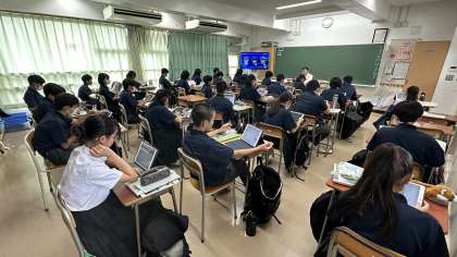 タブレットを使い真剣に学習に取り組んでいます。